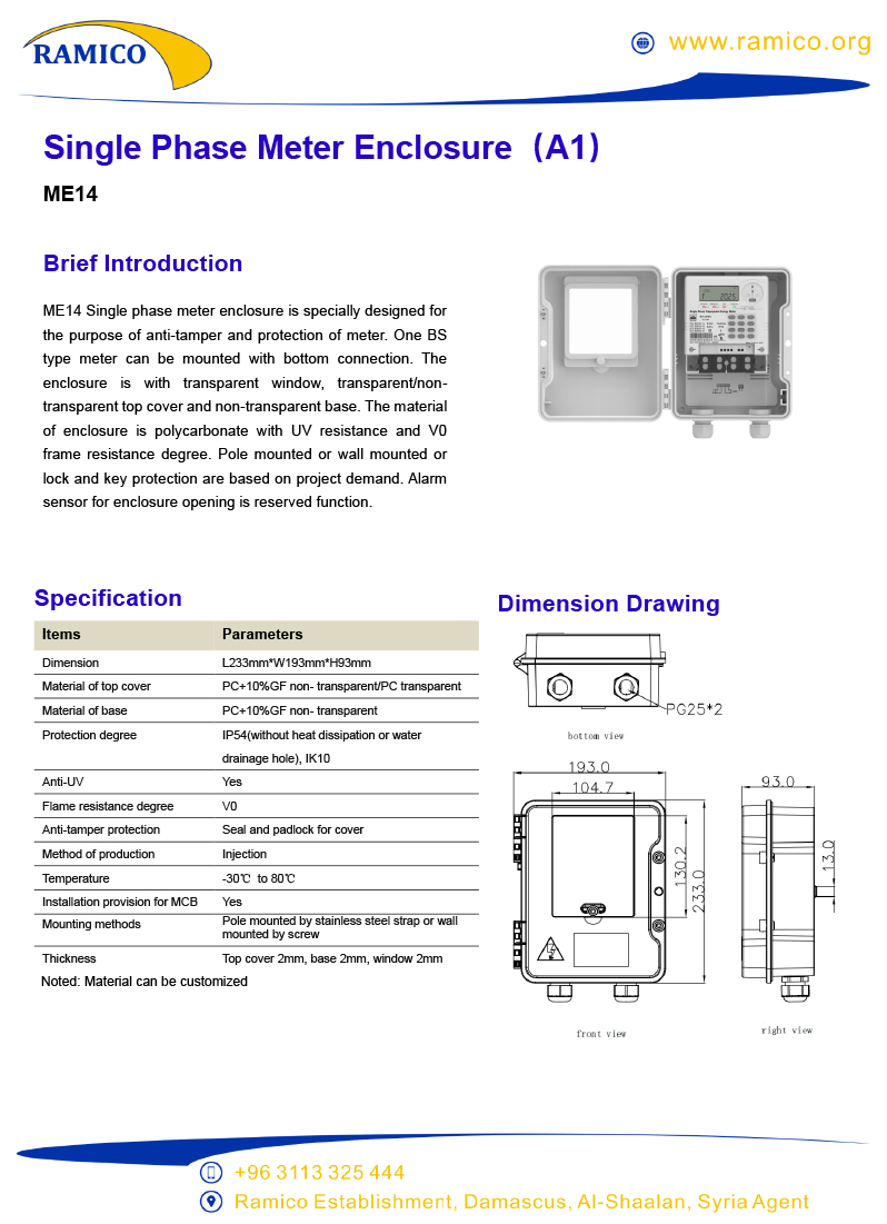 Single Phase Meter Enclosure(A1) ME14
